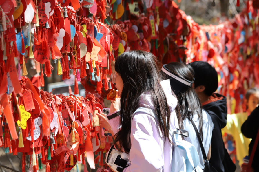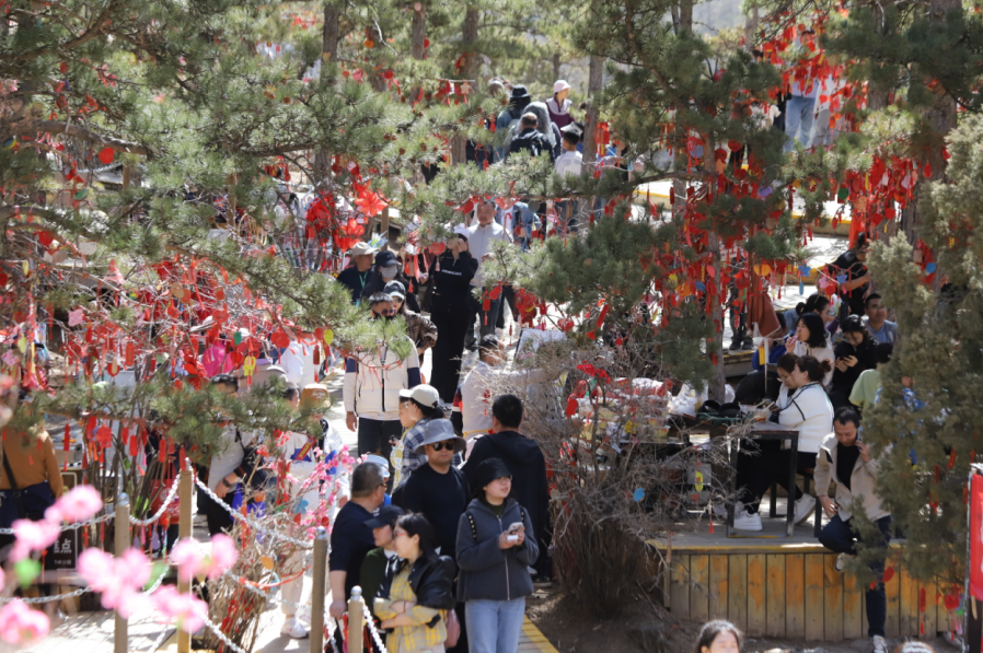 清明假期开展的“贺兰山扁桃花节”特色节庆活动同样收到游客好评。“#春游贺兰山”短视频大赛、“垃圾分类银行”春日踏青特别版、“桃花朵朵开”歌唱挑战赛等一系列丰富活动吸引游客参与。大家为赢得景区特别定制的岩羊与雪豹春日胸章,积极参与活动,现场一片欢声笑语,热闹非凡。