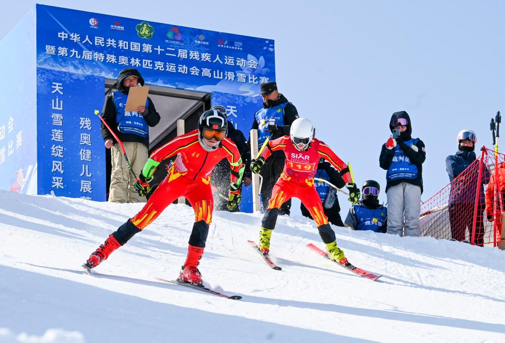 5日,全国第十二届残疾人运动会暨第九届特殊奥林匹克运动会高山滑雪比赛在新疆乌鲁木齐开赛。