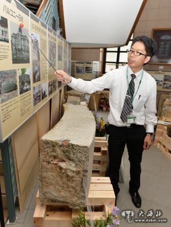 图为日本广岛大学霞校区的医学资料馆内展示的核爆穹顶石材。