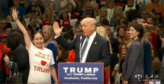 而另一边,共和党总统候选人特朗普25日在加州举行造势活动时,在现场有数名华裔现身,他们还举着“华裔爱特朗普”的标语。特朗普还邀请一位穿着“华裔爱特朗普”T恤的华人上台,两人握手并共同接受群众欢呼。据悉,这位来自加州圣地亚哥的女士名为曾珍,是特朗普华裔助选团的成员之一。