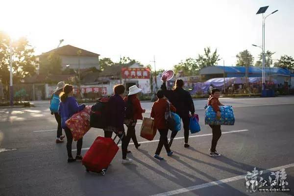 5月15日,山东金乡,7名刚刚抵达的女劳工拖着自己的行李走在大街上。