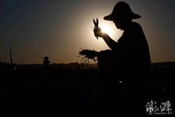 2016年5月20日,山东金乡,田地里正在挖蒜的劳工们。 本文图片 澎湃新闻记者 权义