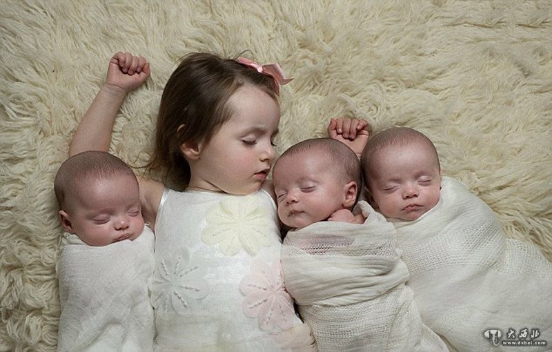 经过DNA鉴定,三个小家伙属于罕见的同卵三胞胎。