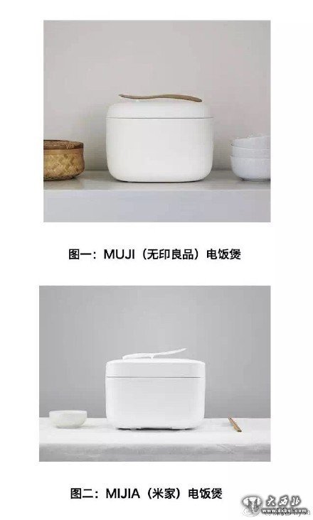 有网友很快指出,这款电饭煲和无印良品2014年推出的一款电饭煲再外观上十分相似,并给出了对比图。两款电饭煲确实在外观上都是近乎全白的配色、方正的外形和倒角圆润的机身,尤其是宣传图放在电饭煲上面的饭勺那一抹曲线,让人说不像都难。随后,又有网友称,mijia名字跟MUJI太像,是抄袭。