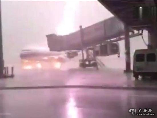 5月30日下午,有关揭阳潮汕国际机场飞机被雷击的视频在网上流传,通过视频可以看到,一架南航涂装的客机疑似被雷电击中。视频中可以看到揭阳潮汕国际机场停机坪上风雨大作,雷声阵阵,电光四射。南方日报记者与揭阳潮汕国际机场有关部门取得联系,后者表示雷击事件属实。图为客机被雷击中瞬间。