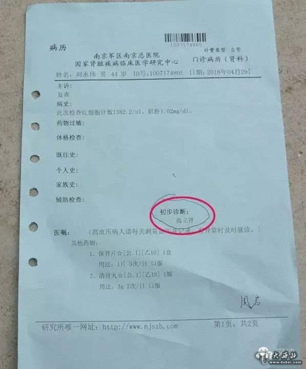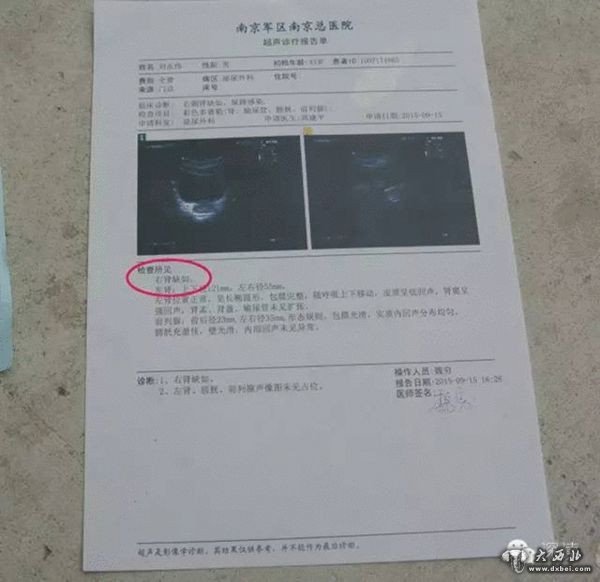 从徐州二院出院的第二天,他到山东省立医院检查后发现,他的右肾竟没有了。之后,他又分别到山东省立医院、南京军区总医院、徐州二院以及宿州当地的多家医院进行检查,检查结果均为右肾缺如或孤立肾。