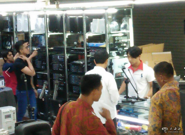 他们一行人来到一家音响设备商店,在维多多挑选麦克风的时候,他的儿子则在一旁随意环顾。
