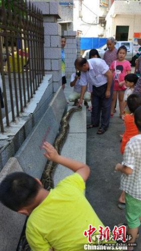 蟒蛇施南王引起小区居民围观 林士杰 摄