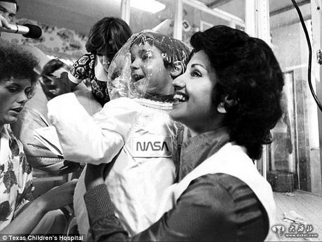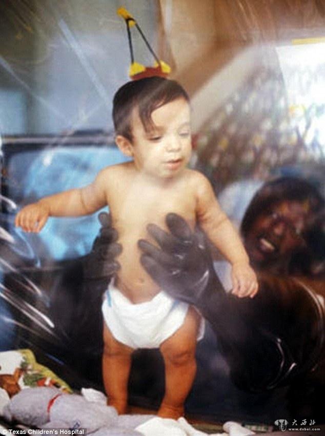 但是在检查了大卫姐姐的血液之后发现二者的骨髓无法很好地配型。因此,大卫就只能继续无时不刻地生活在泡泡中。他无法直接触碰任何人。图为美国宇航局为大卫特制的宇航衣。