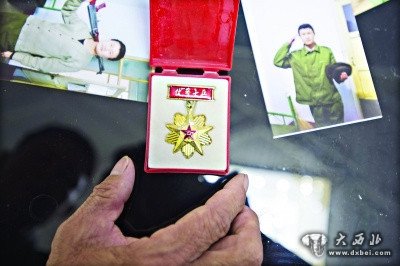 亮亮寄回好多在部队的照片,父母收藏了厚厚的两本相册。杨秋花拿起一张亮亮穿着军装的照片指给记者看,上衣口袋上别着一枚“优秀士兵”的牌子,那是他入伍第一年得到的荣誉。亮亮入伍第一年就入党了,这几年在部队得过不少荣誉,年年有喜报寄回家。