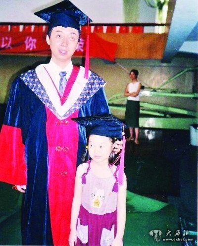 女儿叶雨恬5岁时,在协和医院当医生的爸爸博士毕业,父女俩在毕业典礼现场合影