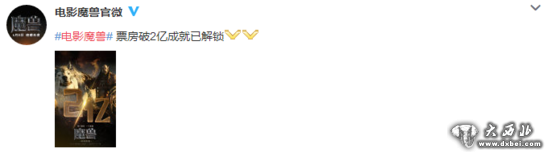上映首日,电影《魔兽》的票房在下午1点便突破2亿,其在社交网络上的官方账号也发布破两亿海报,庆祝这一纪录。