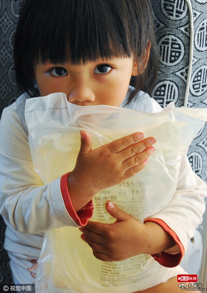 “妈妈快点好起来。“4岁的女儿紧紧抱着一袋腹透液,宝宝的眼神中充满了期盼。