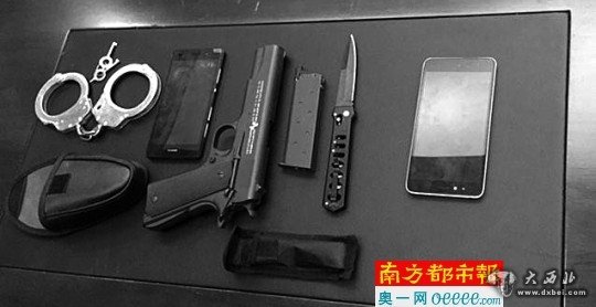 南山警方介绍,5月30日6时许,招商派出所接到报警,市民江先生称其在罗湖向西村建设银行门口,搭载了一名乘客到蛇口,在开到蛇口荔园路路边的公共停车场时突然被乘客叫停,后被乘客持枪威胁抢走了现金、一部金黄色小米手机、驾驶证、行驶证和身份证和一张银行卡。案发后警方迅速成立专案组开展侦查,经海量排查,最终发现嫌疑人落脚点,6月6日17时许,成功将嫌疑人易某(男,33岁,四川人)抓获,并在其指认下,缴获了作案工具:一把气枪、一副手铐、一把匕首、一个充气瓶、塑料和玻璃弹丸若干;并缴获赃物小米手机一部。