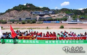 为给2016年兰州国际马拉松赛提供“干净、整洁、舒适”的城市环境,保证赛事顺利进行,兰州市文明办、团市委、市城管委在全市组织开展“关爱母亲河、助力马拉松—兰州青年志愿者在行动”活动。活动当天,来自近郊三区的机关干部、青年志愿者们头顶烈日在黄河风情线雁滩黄河大桥至西沙大桥黄河两岸对河岸进行清洁,对黄河河道沿线乱堆放、白色垃圾、枯枝、破损塑料布、饮料瓶、废纸等生活垃圾进行清理,还对河滩沿线树枝树干上悬挂的杂物、河堤边缘的漂浮物等进行了全面清理。