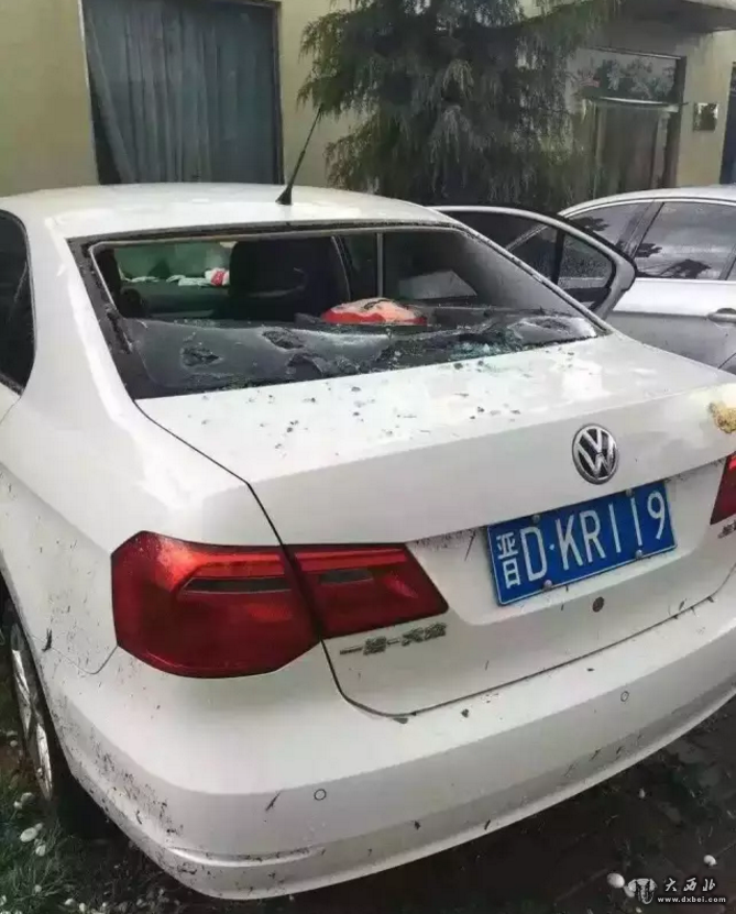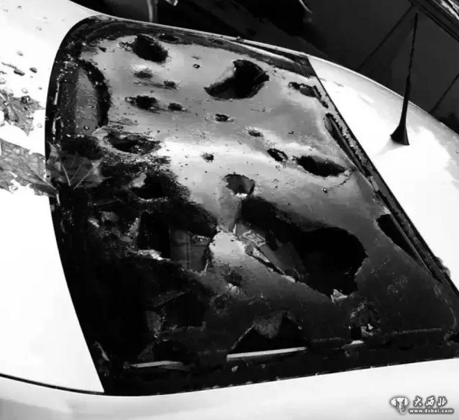当地小区里不少车都砸出了大窟窿。