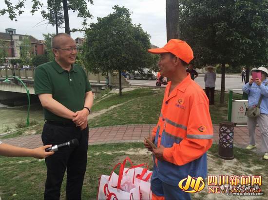 四川新闻网成都6月15日讯(记者 梁鹏 摄影报道)位于成都市都江堰城区的柏条河,是不少都江堰市民纳凉消暑的好去处。6月12日上午,在柏条河中柏桥下,一名30多岁的女子跳进河里欲轻生,在附近工作的环卫工人王正田发现女子跳河后,不顾左腿残疾,一头扎进了水中,成功将轻生女子救起。