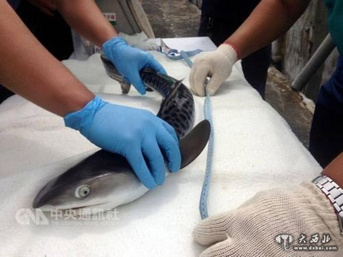 台东长滨定置渔网连续闯入2只虎鲨,先后剖腹取出75只幼鲨,首批38只幼鲨,生命力旺盛已能进食,水试所分析,最近可能是虎鲨繁殖期。图为给鲨鱼跑妇产。