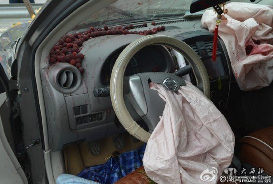 看到受到惊吓的网友评论后,湖南的交警蜀黍们坐不住了,他们随后在微博上回复网友称:“民警赶到现场后,整个驾驶室都是倾洒了一地的杨梅!”