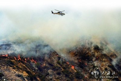 当地时间20日,直升机投掷水弹来扑灭加州山火