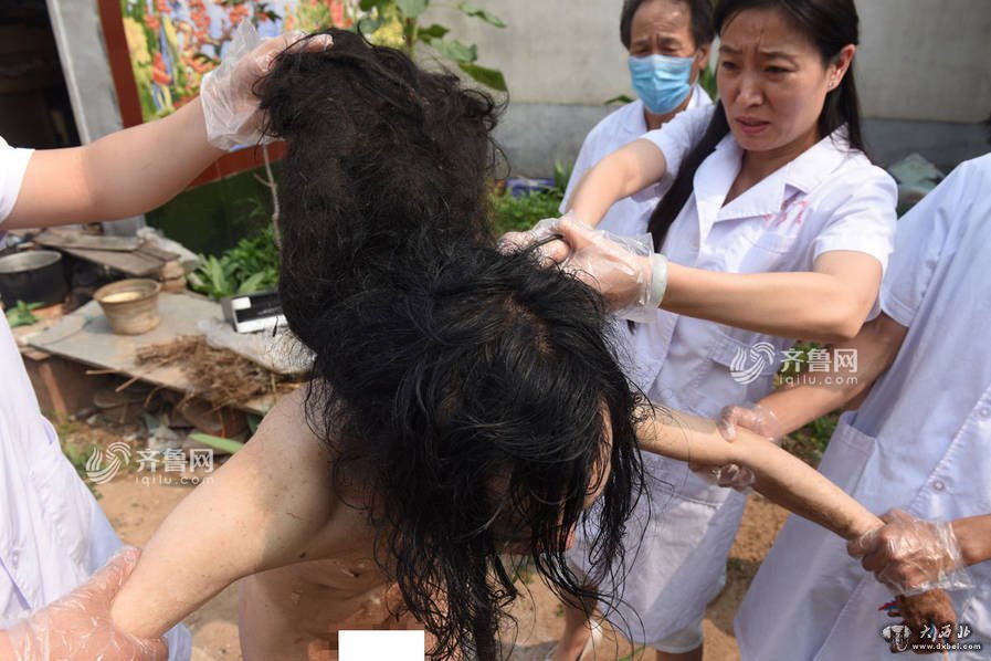 由于家属不敢靠近,吴强已长发及腰并板结在一起。