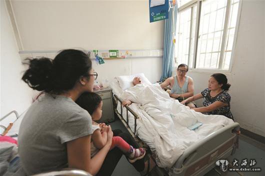 几个月前,在国外读博士的女儿携1岁的外孙女回汉探亲。一家人在病房内团聚,于利觉得无比欣慰。图为:十年来妻子已习惯独守家中