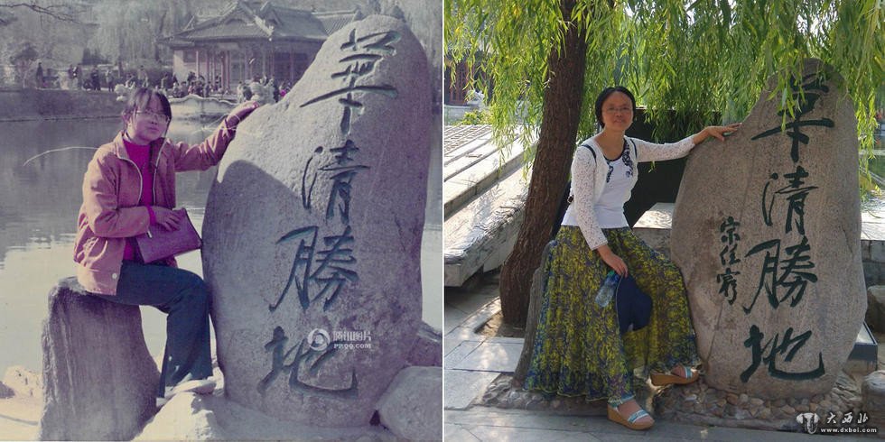 1988年,我考上了陕西咸阳的西北轻工业学院。左图是1989年,我在西安华清池留影。右图是2015年7月,我们一家三口自驾游,经过西安华清池时,我触景生情,让爱人给我拍下了这张照片。26年了,景变了,人变了,生活也更美好了。作者:郭岚