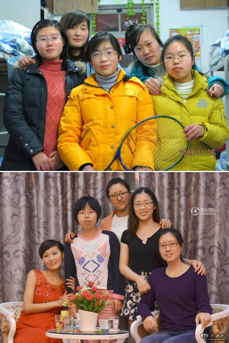 上图是大一时,室友们渐渐熟悉了,开始一起疯狂自拍。下图是工作后,我们第二次一起参加舍友婚礼,再次相聚。作者:丁越