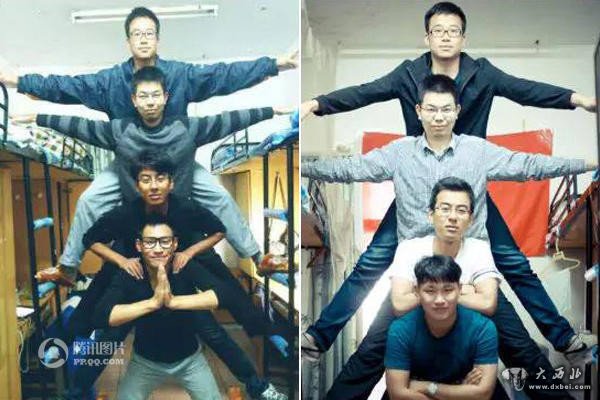 左图是2013年,我们寝室为了参加寝室公约大赛,拍下这张照片。右图是2016年,毕业回校,我们又想起拍这样一张照。四年来,我们变化都很多,不变的是我从来都舍不得离开你们,永远的16-108!作者:Michael-旅摄人