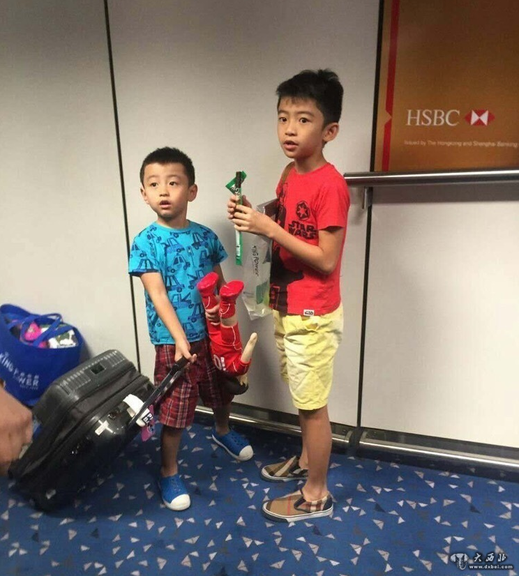 兄弟俩都面目清秀,帮妈妈分担行李箱的小儿子显得萌萌的。