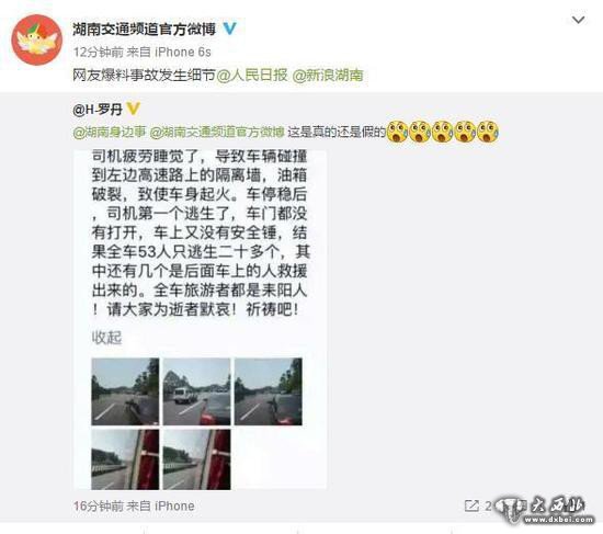 据湖南交通频道报道,事件发生后,有网友爆料称,司机疑似疲劳驾驶,而且出事后第一个逃生,没有打开车门。