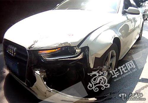 被摩托车撞坏的奥迪车