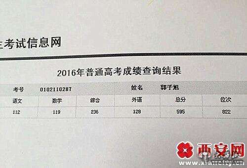 全省文史类考生总分第822名、总成绩595分、英语单科128分,西安中学重点班毕业、年级排名前30名的优秀学生,小郭。现在却整日待在家中,郁闷的无以复加。明明可以被北京外国语大学录取,但现在陕西省招办却压着他的档案不投给高校,这样让他很有可能因为滑档而无学可上。