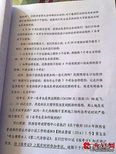小郭的家长很疑惑“我想请问,不管是北外也好,陕西省招办也好,你们把考试放在了同一天,一个在北京,一个在西安,你让我们家长如何选择?如何选择才是对的?!我们实在是走投无路,那三个学生是通过什么方法得到的成绩的”