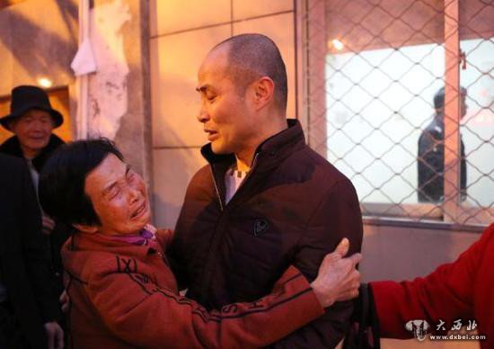 2016年2月4日,福建莆田,晚6点多,许玉森的母亲赶到涵江监狱门口接人,见到儿子后激动地抱着儿子不放。