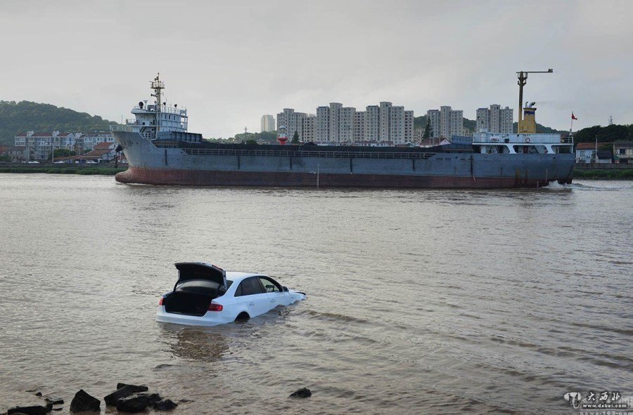 由于该车冲入甬江时正值退潮,车辆已漂离了原来的落水位置,打捞难度较大。