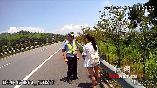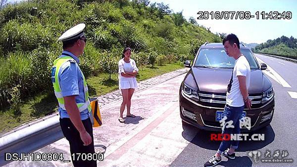 7月8日11时许,湖南省高速公路警察局邵阳支队新宁大队民警巡逻至洞新高速南往北42千米处时,发现一位青年女子在高速上行走,后面跟着一个男子在追喊着“不要再走了,上车”,女子继续前行不搭理男子。