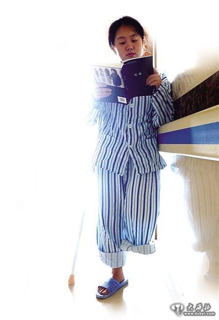 昨天,在重庆医科大学附属第一医院的病房里,记者见到了病床上的杨丹。与其他病人不一样的是,杨丹没有了左腿,只能靠父亲搀扶或用拐杖行走。