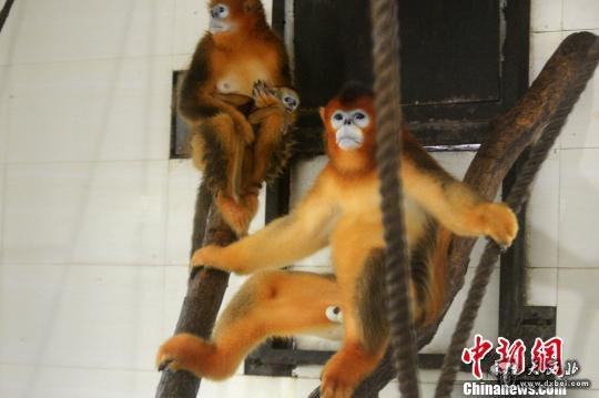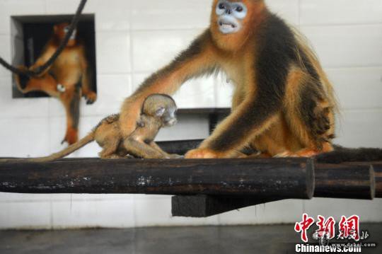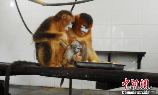 江苏扬州成功繁育金丝猴 小金丝猴呆萌又可爱