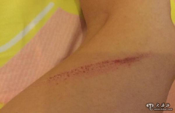 她拽着对方不让走,对方于是对她拳打脚踢,并且一直从站台打到人行道路牙,最后小钱摔倒,后背、大腿等多处划伤,手臂、小腿等皆有挫伤。男子趁机逃脱。