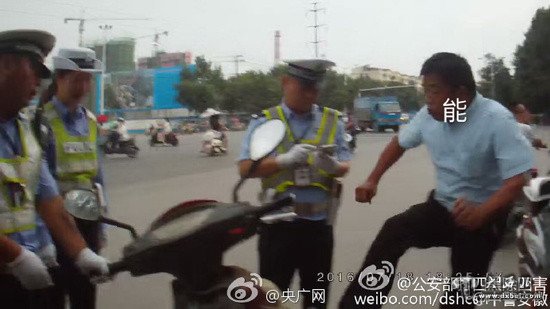 18日,安徽阜阳男子秦某骑电动车在机动车道行驶。执勤交警对其违法行为进行纠正,秦某以交警找茬为由推搡执勤交警,并多次破口大骂,恶语伤人。当晚@颍州警方在线 以妨碍执行公务对秦某处以行政拘留8天。秦某经典语录:“我不被车撞死,你就不能管我......