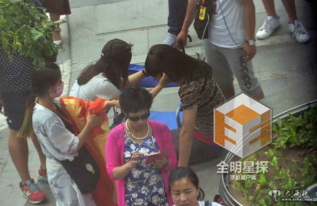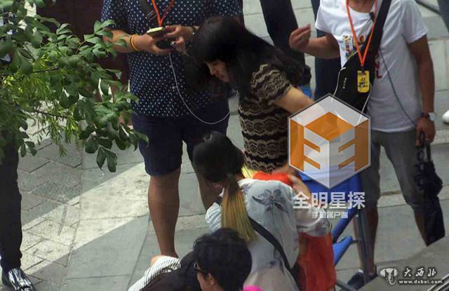 小沈阳脱下了长裙,与助理们一同来到一处花台旁坐下,助理随即拿来一顶假发为他套上,之后又再次将裙子围上。