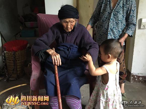 四川新闻网记者在老人家中看到,老人身穿朴素的粗布衣,相隔几个小时,就会去床上睡一会儿,睡觉也不宽衣盖被,只是轻轻蜷在床上养神,每次小睡时间也很短,大约1个钟头左右就会起来,“相比起去年,她现在走路不太利索了,需要人扶着,要不自己站着站着都会倒。”这时,冷婷的女儿,老人一岁半的玄孙萱萱,看到老人起来了,便拿出自己的糖果,递到老人手里,冷婷说,现在老人不太爱说话,但是特别喜欢小孩子,经常还会逗萱萱玩。记者看到,老人接过萱萱递给自己的糖,小心翼翼地放进随身的口袋里装好。