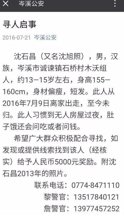 7月21日,“岑溪公安” 官方微信发布了一则寻人启事
