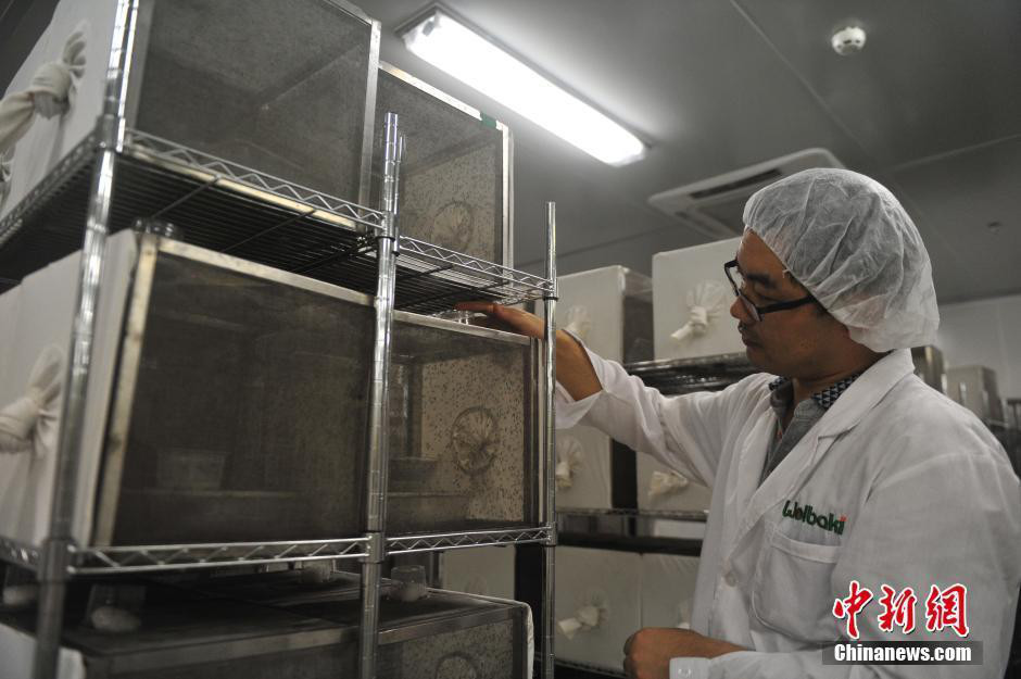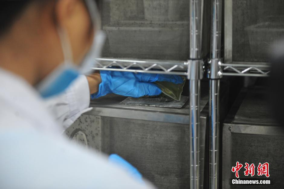 实验室科技人员使用动物血液培育蚊子。 中新社记者 黄卓贤 摄
