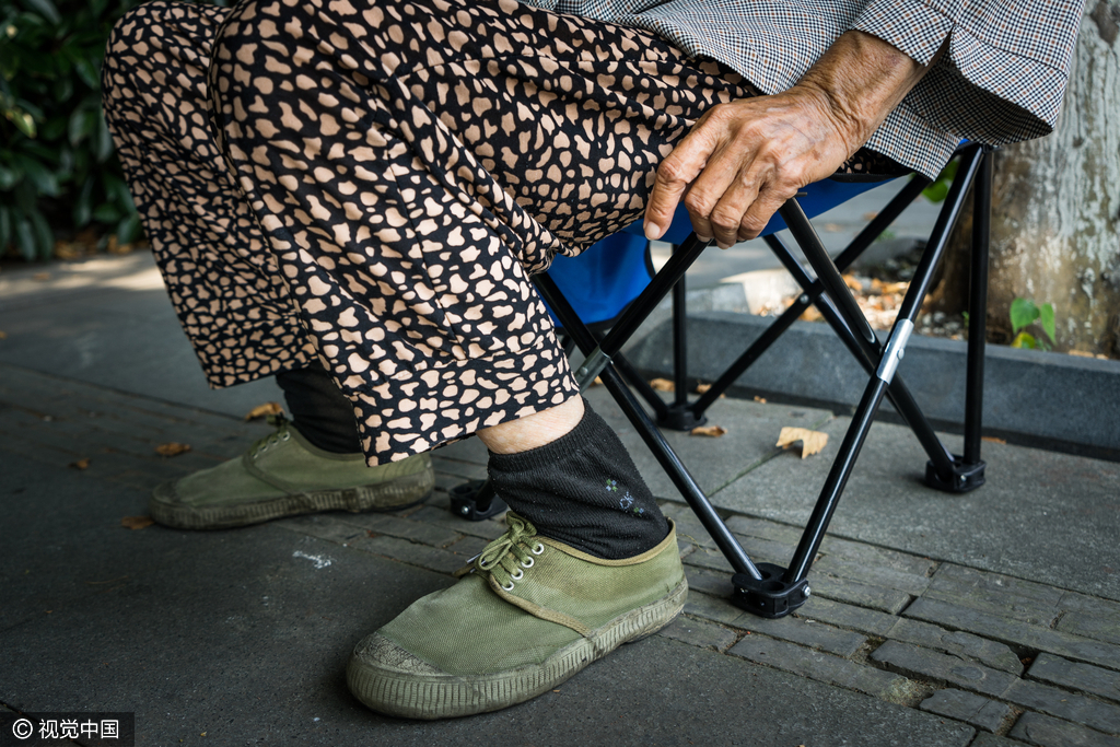 2016年7月24日,江苏省无锡市,老太常年穿着的解放鞋。