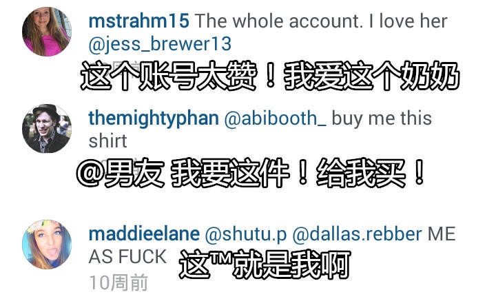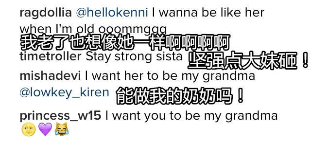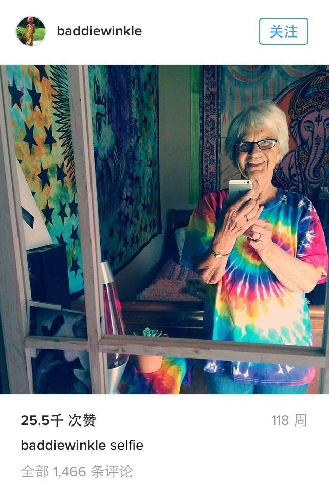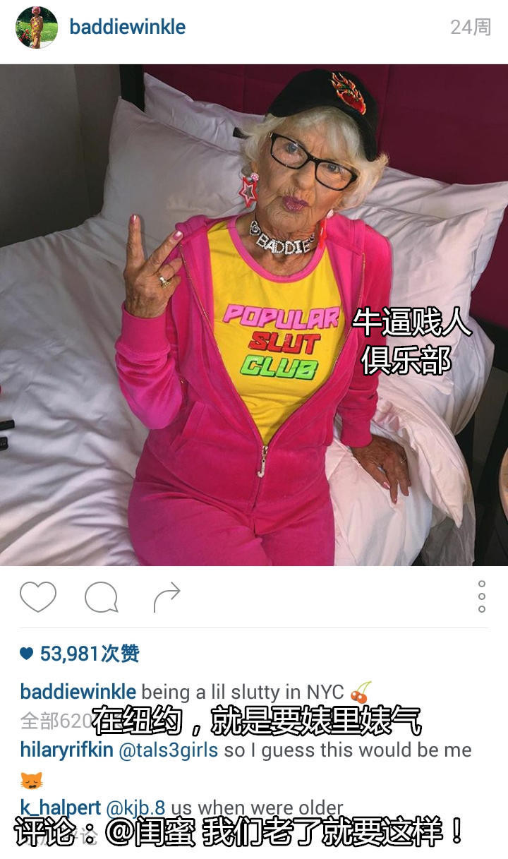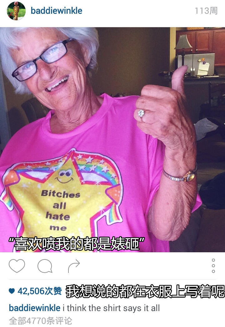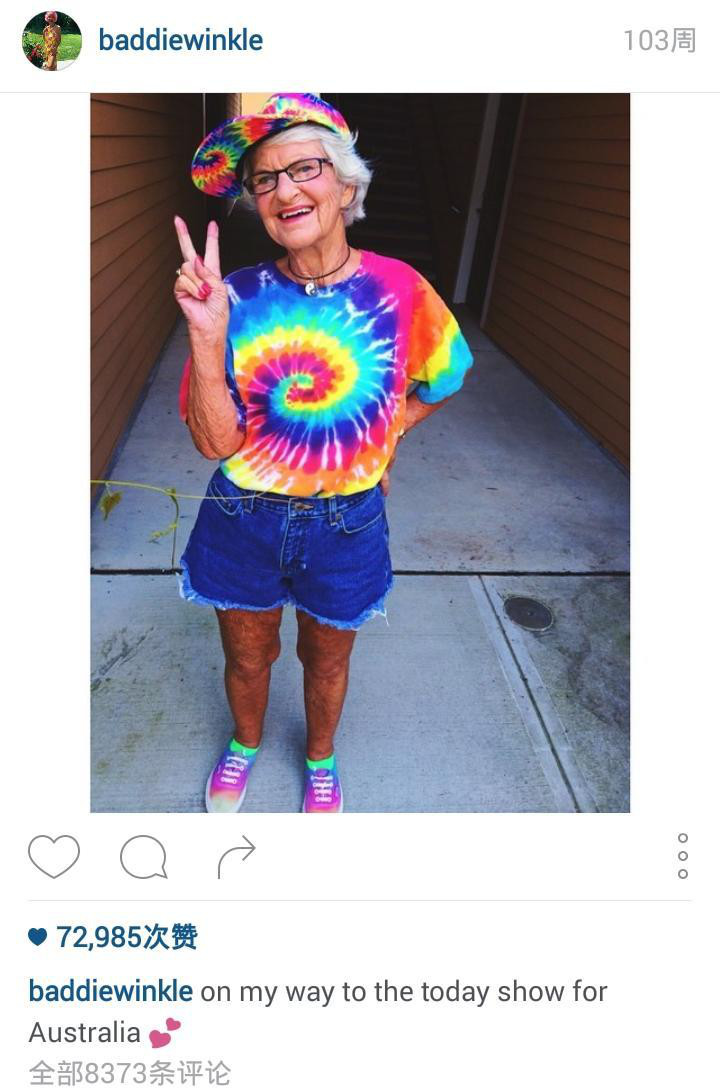 妹想到皂片一经po出,孙女的朋友纷纷点赞留言,夸奶奶很潮很酷很好看,给她很多的鼓励。奶奶自己也觉得穿的年轻点也挺好,于是少女心萌芽,立刻开了一个INS账号,寻思着做一个狂拽酷炫吊炸天的87岁资深少女