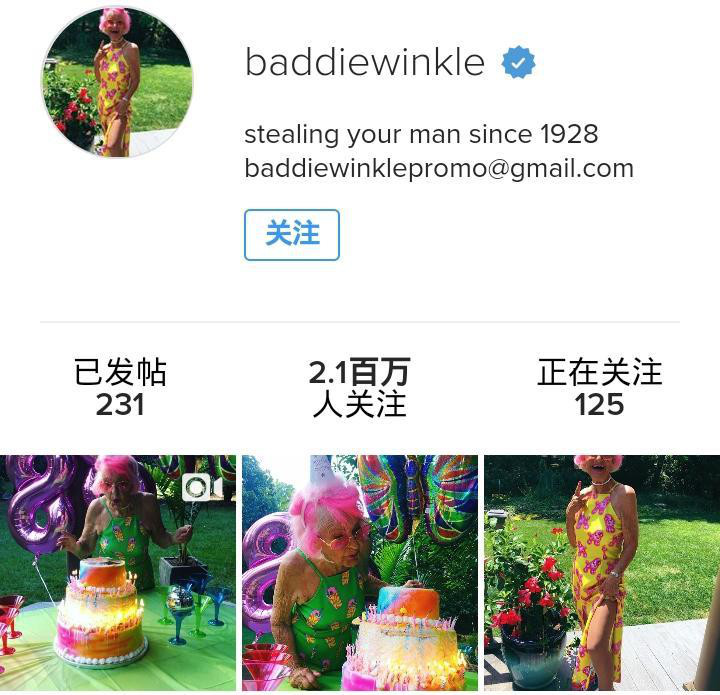 这个87岁的老奶奶,名叫Baddie Winkle,生活在美国肯塔基周的一个安静的小镇