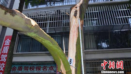 坠楼者掉落在树枝分叉处。 网络图片 摄