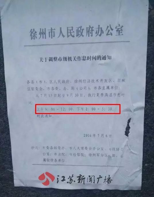 徐州市政府文件公示的作息时间。